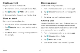 2. Tap Calendar > Add to add an event. 2. Tap Calendar, tap an event, and tap again to