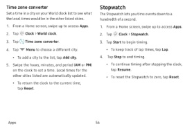 2. Tap Clock > World clock. 2. Tap Clock > Stopwatch.