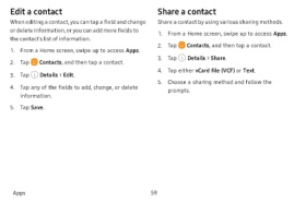 When editing a contact, you can tap a field and change Share a contact by using various sharing methods.