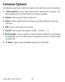 • Checkbox: Tap to enable or select. When enabled, a checkmark
