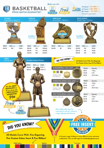 BASKETBALL Avaliable in Male & Female DID YOU KNOW? All Medals Come With: Free Engraving