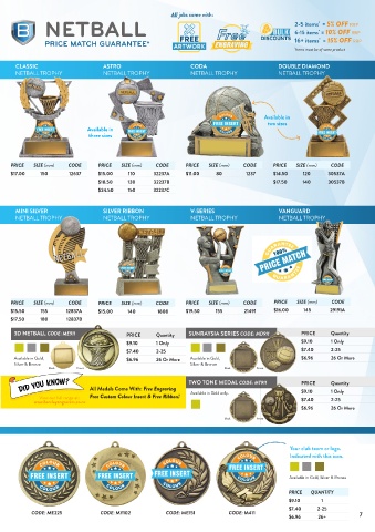 3D NETBALL CODE: ME911 PRICE Quantity SUNRAYSIA SERIES CODE: MD911 PRICE Quantity