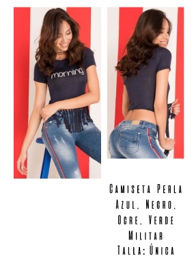 Camiseta Perla Azul, Negro, Ocre, Verde Militar Talla: Única