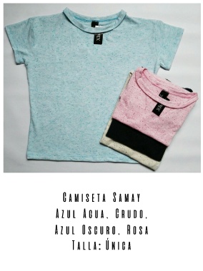 Camiseta Samay Azul Agua, Crudo, Azul Oscuro, Rosa Talla: Única