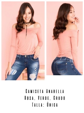 Camiseta Anabella Rosa, Verde, Crudo Talla: Única