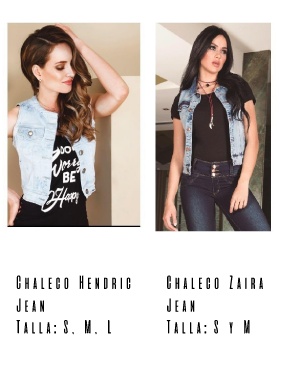 Chaleco Hendric Chaleco Zaira Jean Jean Talla: S, M, L Talla: S y M