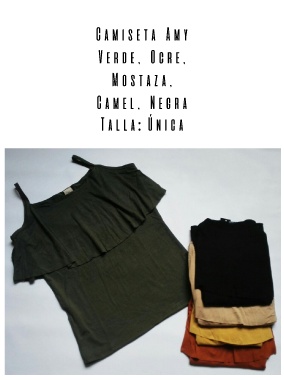 Camiseta Amy Verde, Ocre, Mostaza, Camel, Negra Talla: Única