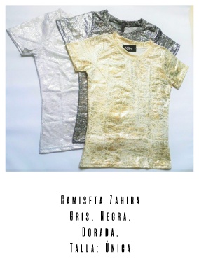 Camiseta Zahira Gris, Negra, Dorada. Talla: Única