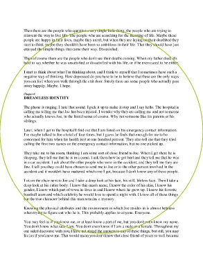 sleeping, they tell me that he is in a coma. I ask them how he got hurt and they tell me that he was