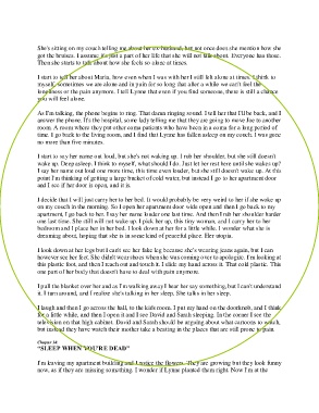 apartment, I go back to her. I say her name louder one last time. And then I rub her shoulder harder