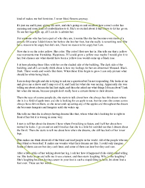 Now she is on the color yellow. Her color. The color I first saw her in. She tells me that a yellow