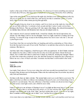 actions, the only thing I can't see are her thoughts. Now I see light, someone is coming out of the