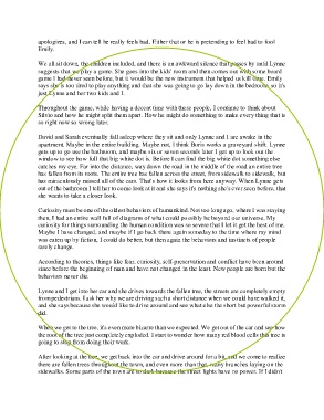 We all sit down, the children included, and there is an awkward silence that passes by until Lynne