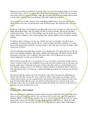 downtown area of the city and find a city dump where I toss all twelve garbage bags over the fence.