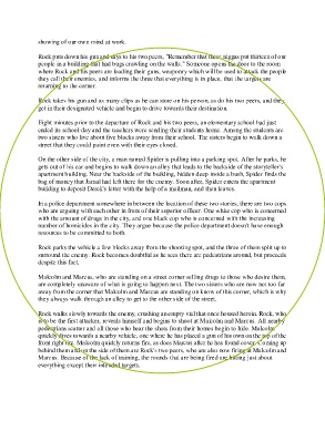 pedestrians scatter and all those who hear the shots from their homes begin to hide. Malcolm