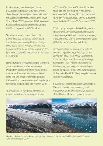 Gambar 1 Gletser Columbia di Alaska yang menyurut sejauh 6,5 km antara 2009 (kiri) sampai 2015 (kanan).