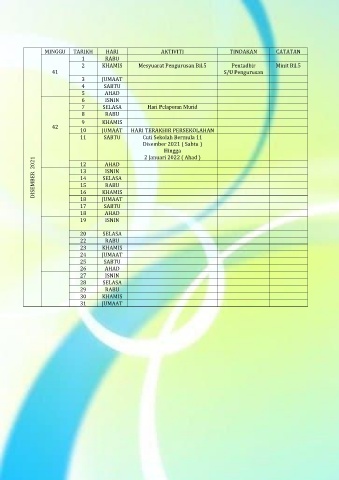 MINGGU TARIKH HARI AKTIVITI TINDAKAN CATATAN