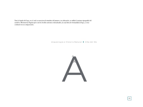 Para el nombre del museo en el logotipo se utilizó la tipografía Montserrat Regular modificada, redondeando los bordes Para la bajada del logo, en el cual se menciona la temática del museo y su ubicación, se utilizó la misma tipografía del