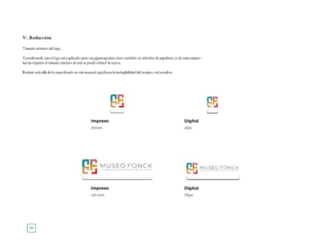 tancia respetar el tamaño mínimo al cual se puede reducir la marca. Es vital no cambiar la escala cromática, ni el orden de los colores.