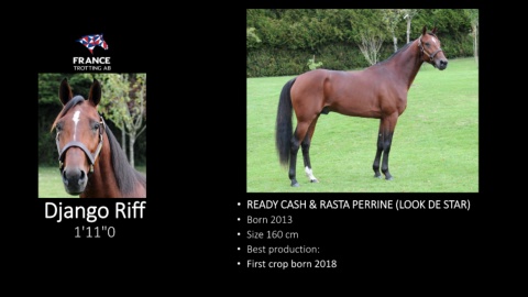 Django Riff • READY CASH & RASTA PERRINE (LOOK DE STAR) • Born 2013 1'11"0 • Size 160 cm • Best production: • First crop born 2018