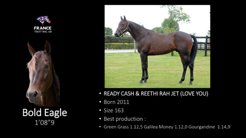 • READY CASH & REETHI RAH JET (LOVE YOU) • Born 2011 Bold Eagle • Size 163 • Best production : 1’08”9 • Green Grass 1.12,5 Galilea Money 1.12,0 Gourgandine 1.14,9