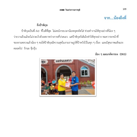 ว่ายวานถึงแม้จะไม่รวดเร็วด้วยสภาพร่างกายทปวดเอว แต่ป้าพิกุลก็เต็มใจท าให้ทุกอย่าง หมดวาระหน้าท