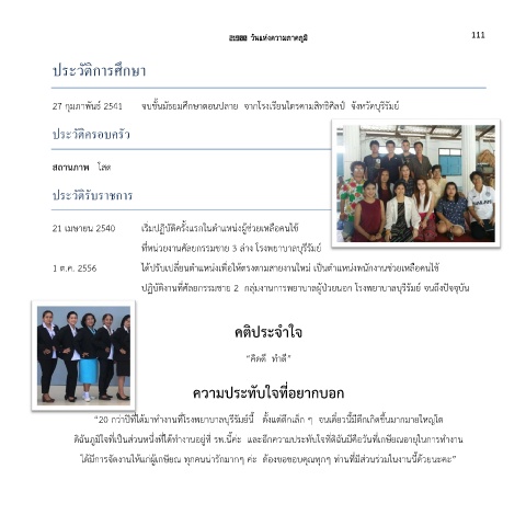 ดิฉันภูมิใจที่เป็นส่วนหนึ่งที่ได้ท างานอยู่ที่ รพ.นี้ค่ะ และอีกความประทบใจที่ดิฉันมีคอวันที่เกษียณอายุในการท างาน