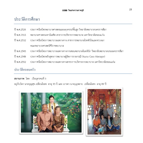 ปี พ.ศ.2553 พยาบาลศาสตรมหาบัณฑิต สาขาการบริหารการพยาบาล มหาวิทยาลัยขอนแก่น