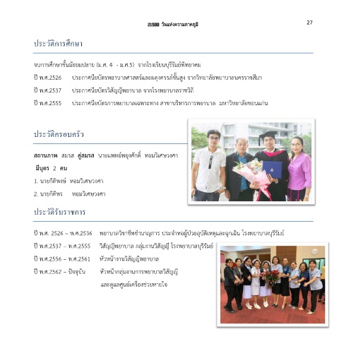 ปี พ.ศ. 2526 – พ.ศ.2536 พยาบาลวิชาชีพช านาญการ ประจ าหอผู้ป่วยอุบัติเหตุและฉุกเฉิน โรงพยาบาลบุรีรัมย์