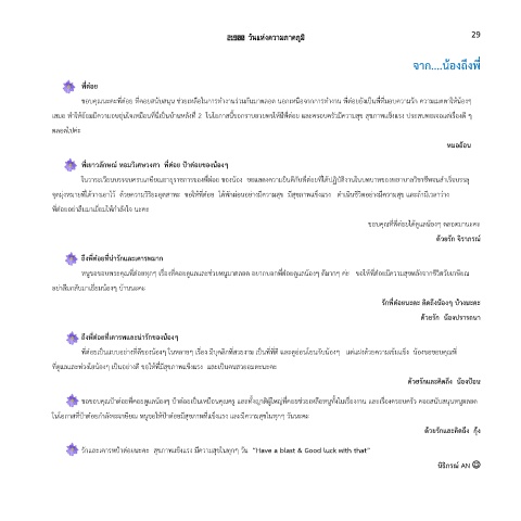 เสมอ ท าให้อ้อมมีความอบอุ่นใจเหมือนที่นี่เป็นบ้านหลังที่ 2 ในโอกาสนี้ขอกราบอวยพรให้มีพี่ต๋อย และครอบครัวมีความสุข สุขภาพแข็งแรง ประสบพอเจอแต่เรื่องดี ๆ