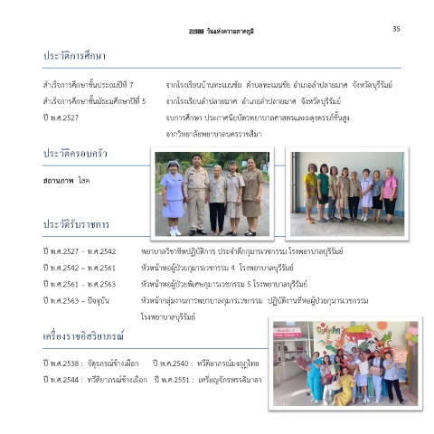 ปี พ.ศ.2527 – พ.ศ.2542 พยาบาลวิชาชีพปฏิบัติการ ประจ าตึกกุมารเวชกรรม โรงพยาบาลบุรีรัมย์