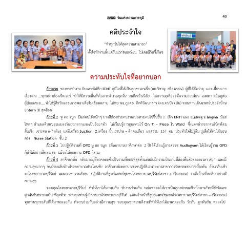 ก้าวแรก ของการท างาน จับฉลากได้ตึก EENT ภูมิใจที่ได้เป็นลูกสาวอาเตี่ย (นพ.วิชาญ ศรีสุพรรณ) ผู้ที่ได้ชอว่าดุ และเนี้ยบมาก