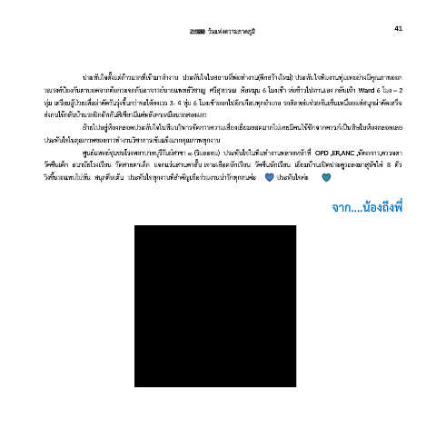ทุ่ม เตรียมผู้ป่วยเพื่อผ่าตัดวันรุ่งขึ้นกว่าจะได้ลงเวร 3- 4 ทุ่ม 6 โมงเชาออกไปอีกเกือบทุกอ าเภอ รถติดหล่มชวยกันเข็นเหนื่อยแต่สนุกผ่าตัดเสร็จ