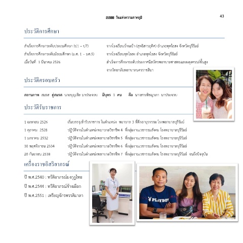 เมื่อวันท 1 มีนาคม 2526 ส าเร็จการศึกษาระดับประกาศนียบัตรพยาบาลศาสตรและผดุงครรภ์ชนสูง