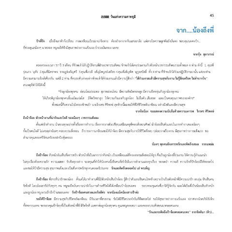 จิตใจดี โอบอ้อมอารีย์กับทุกๆ คน หนูจะยึดมั่นความน่ารักในการด ารงชีวิตให้ได้เหมือนป้าจ้อยนะคะ ขอบพระคุณค่ะที่เราได้รู้จักกัน และได้เป็นพี่เป็นน้องเป็นหัวหน้า