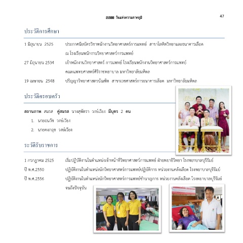 ปี พ.ศ.2556 ปฏิบัติงานในต าแหน่งนักวิทยาศาสตร์การแพทย์ช านาญการ หน่วยงานคลังเลือด โรงพยาบาลบุรีรัมย์