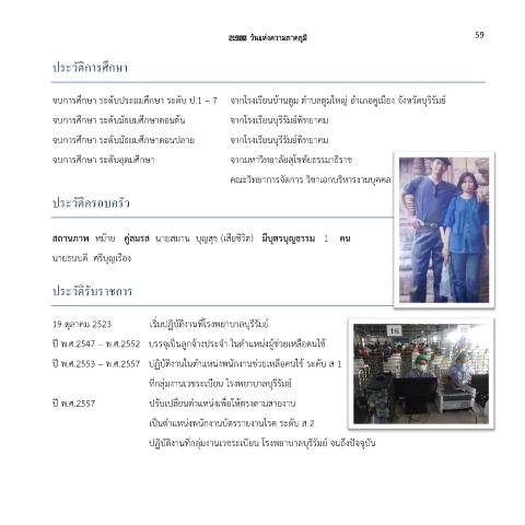 ปี พ.ศ.2553 – พ.ศ.2557 ปฏิบัติงานในต าแหน่งพนักงานช่วยเหลือคนไข้ ระดับ ส 1