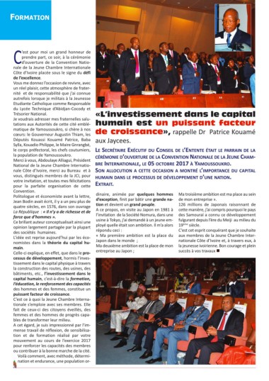 National de la Jeune Chambre Internatio- brE InTErnATIOnALE, LE 05 OCTObrE 2017 à yAMOuSSOuKrO.