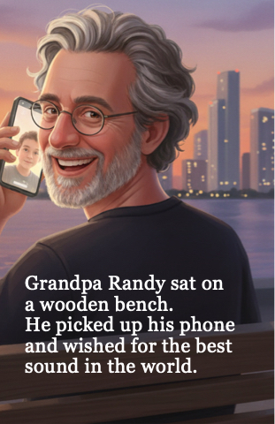 Grandpa Randy sat on a wooden bench. He picked up his phone and wished for the best sound in the world.