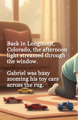 Back in Longmont, Colorado, the afternoon light streamed through the window. Gabriel was busy zooming his toy cars across the rug.