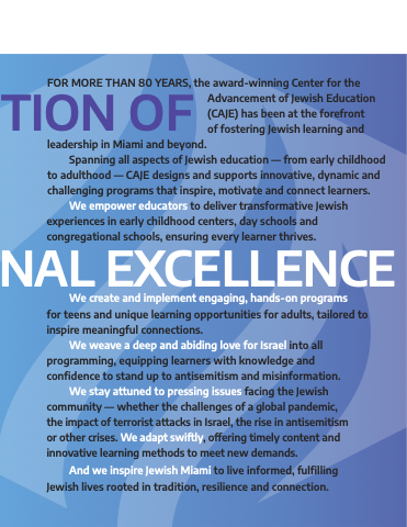 And we inspire Jewish Miami to live informed, fulfilling