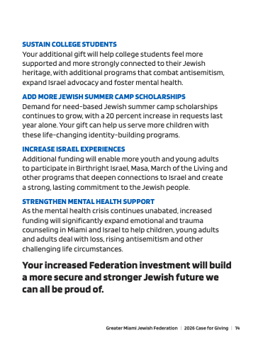Greater Miami Jewish Federation | 2026 Case for Giving | 14
