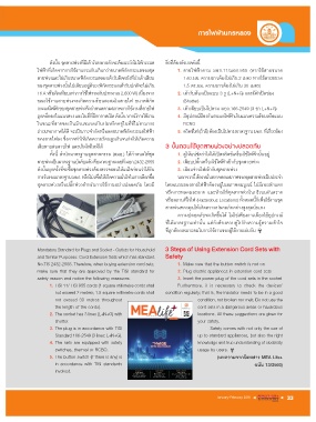 ชุดสายพ่วงหรือปลั๊กพ่วงส�าหรับการใช้งานอย่างปลอดภัย โดยมี โดยฉนวนของสายไฟฟ้าต้องอยู่ในสภาพสมบูรณ์ ไม่มีรอยหักแตก