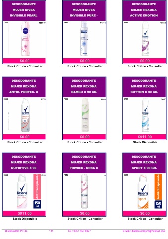 Distribuidora P.R.O. 131 Tel.: 0351-458-8927 E-Mail: distribuidorapro@hotmail.com