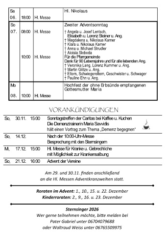 So, 14.12. Nach der 10:00-Uhr-Messe