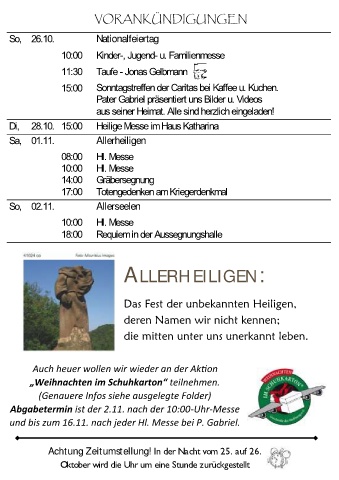 und bis zum 16.11. nach jeder Hl. Messe bei P. Gabriel.