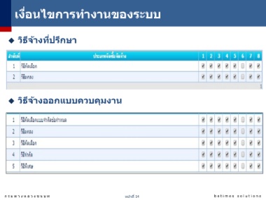 เงื่อนไขการท างานของระบบ วิธีจ้างที่ปรึกษา วิธีจ้างออกแบบควบคุมงาน ก ร ม ท า ง ห ล ว ง ช น บ ท หน้าที่ 14 b e t i m e s s o l u t i o n s
