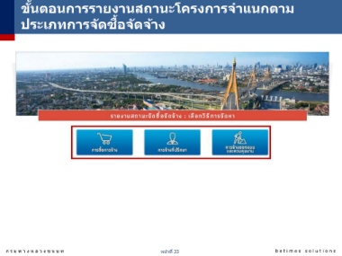ขั้นตอนการรายงานสถานะโครงการจ าแนกตาม ประเภทการจัดซื้ อจัดจ้าง ก ร ม ท า ง ห ล ว ง ช น บ ท หน้าที่ 33 b e t i m e s s o l u t i o n s