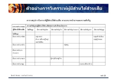 หน้า 25 b e t i m e s s o l u t i o n s ั ตวอย่างการวิเคราะห์ผู้มีส่วนได้ส่วนเสีย