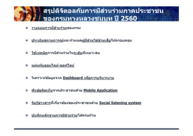 ั สรุปดิจิตอลกบการมีส่วนร่วมภาคประชาชน ประเมินสถานการณ์และกําหนดผู้มีส่วนได้ส่วนเสียให้ครอบคลุม รบรู้ข่าวสารที่เกี่ยวข้องของประชาชนด้วย Social listening system